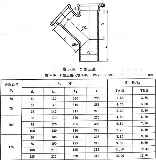 Y型三通型式(shi)見圖 5-16,尺寸見表(biao) 5-16。