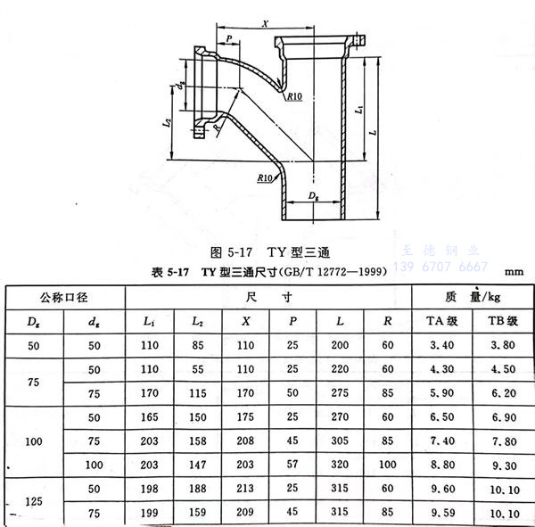 TY型三通型式(shi)見(jian)圖 5-17,尺寸見(jian)表 5-17。