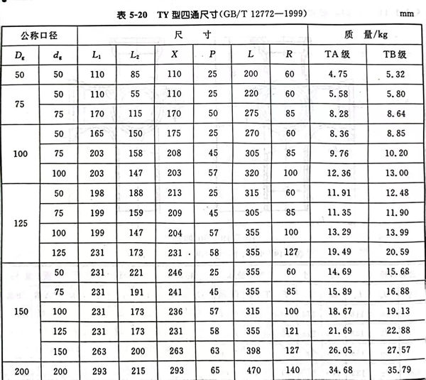 TY型(xing)四通型(xing)式(shi)見圖 5-20,尺寸見表 5-20。