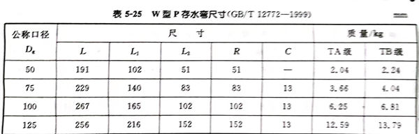 W型 P 存水彎(wan)型式見圖 5-25,尺(chi)寸見表 5-25。