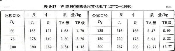 W型 90°短彎頭(tou)型式見圖 5-27,尺寸見表 5-27。