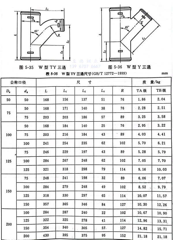 W型(xing) TY三通(tong)型(xing)式(shi)見圖 5-35,尺寸(cun)(cun)見表(biao) 5-35。W型(xing) Y三通(tong)型(xing)式(shi)見圖 5-36,尺寸(cun)(cun)見表(biao) 5-36。