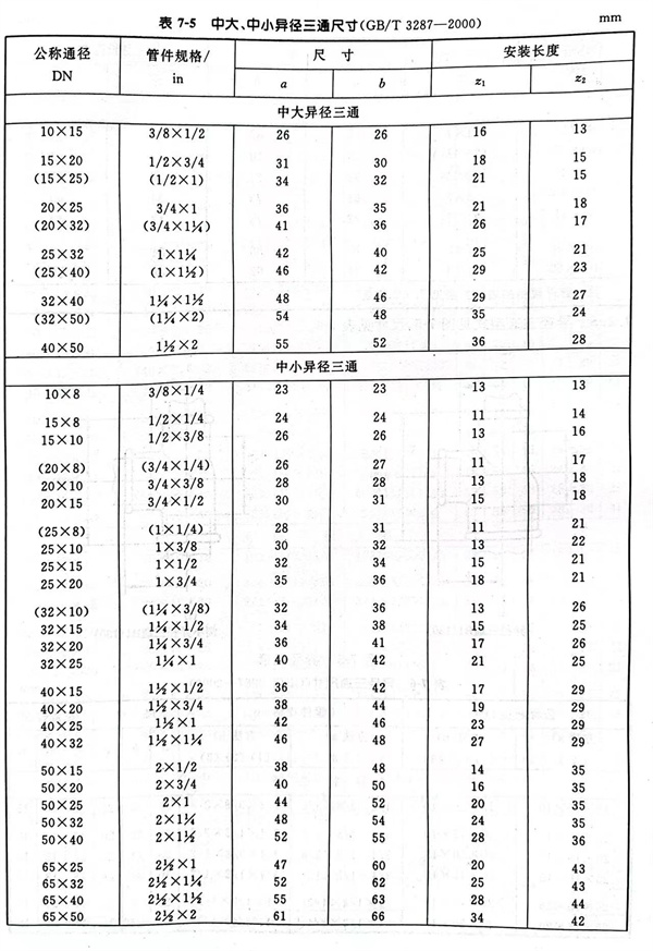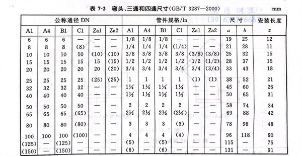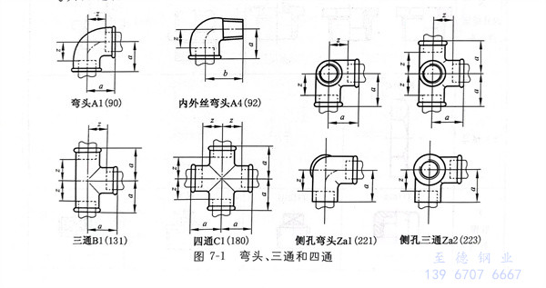 彎頭、三通和四通型(xing)式見圖 7-1 ,尺寸見表 7-2 。