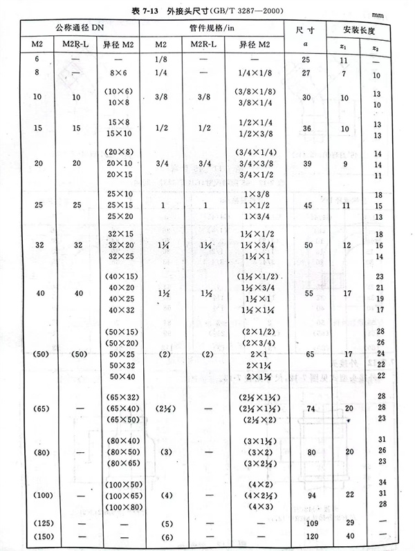 內外絲接頭(tou)型式見圖 7-13 ,尺寸(cun)見表 7-14 。