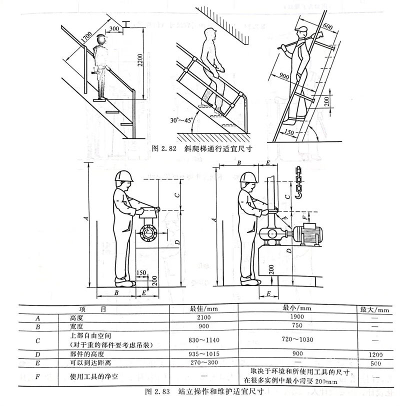 操作和維護適(shi)宜尺寸見圖2.83~圖2.90所(suo)示。