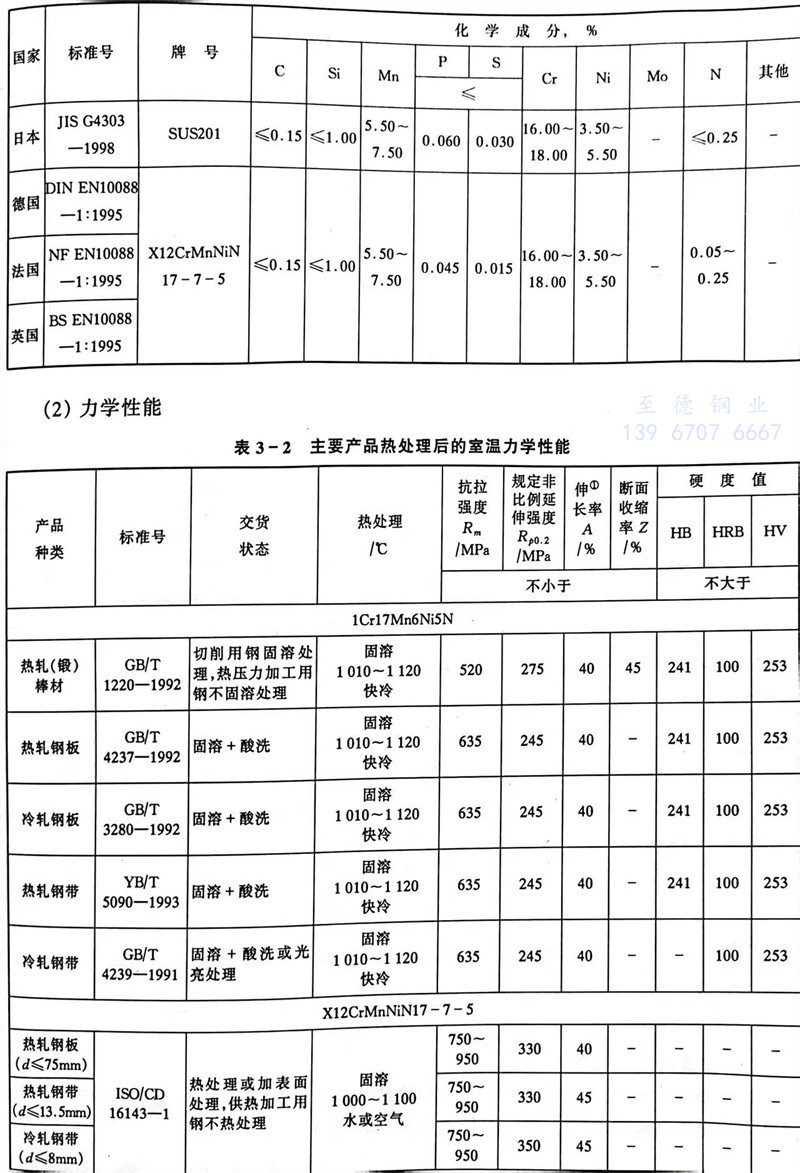 用錳和氮代替1Cr17Ni7中部分鎳而形成的節鎳不銹鋼冷加工后有磁性,焊后有晶間腐蝕傾向。用于制造鐵道車輛和零部件、傳送帶、螺栓和螺母等。