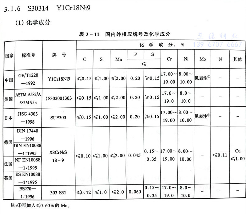 S30314 Y1Cr18Ni9 不(bu)銹鋼(gang)主要特性(xing)和用途