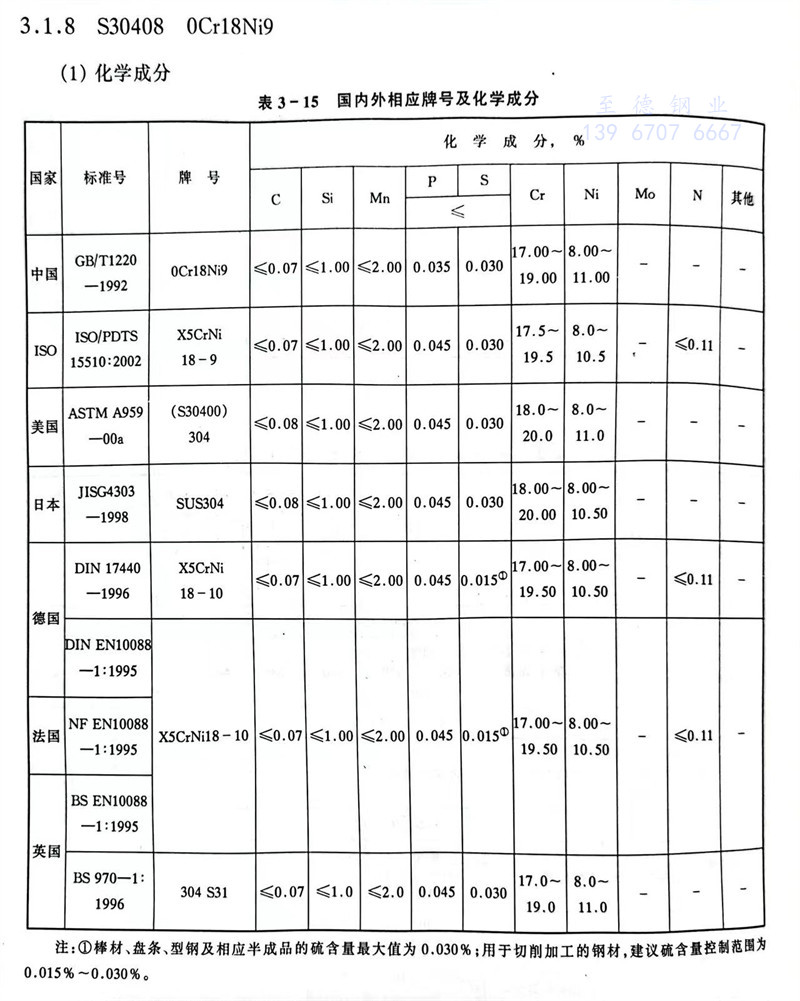S30408 0Cr18Ni9 不銹鋼主要特(te)性和用途(tu)
