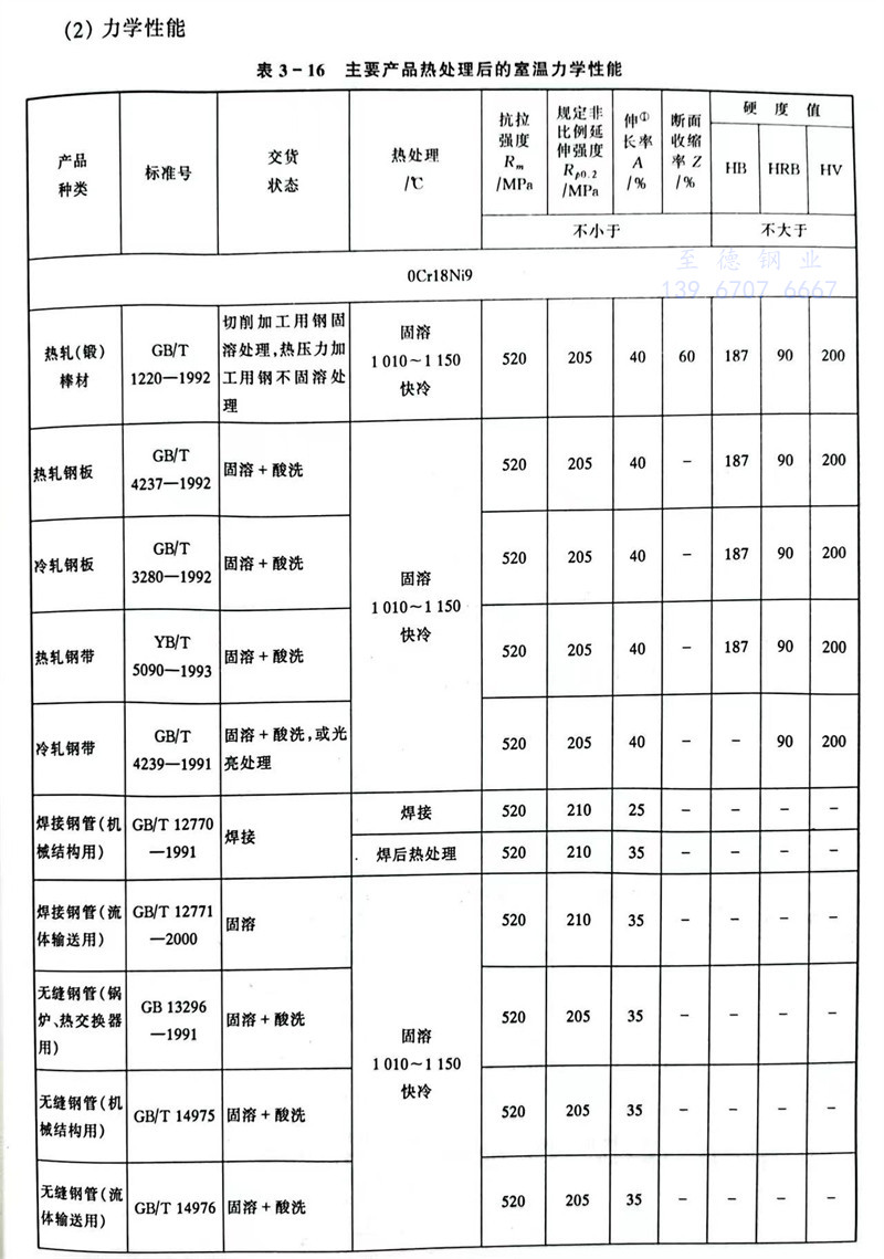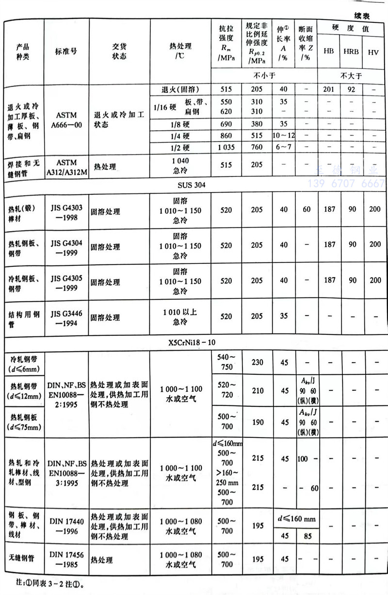 是奧氏體(ti)型不銹鋼中生產量和(he)使用(yong)量最大(da)(da)的牌號之一。具有(you)優良(liang)的耐(nai)腐蝕性(xing)能以及(ji)冷加(jia)工沖壓(ya)性(xing)能。對氧(yang)化性(xing)酸(如硝酸)具有(you)很強的耐(nai)腐蝕性(xing)。對堿溶液及(ji)大(da)(da)部分(fen)有(you)機酸和(he)無機酸亦有(you)一定的耐(nai)腐蝕能力(li)。低(di)溫性(xing)能較好(hao),在-180℃條件下強度、伸長率(lv)(lv)和(he)斷(duan)面收縮率(lv)(lv)都很好(hao)。