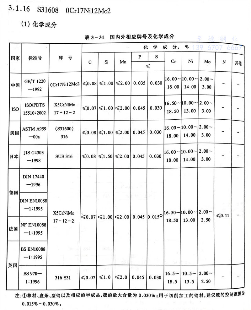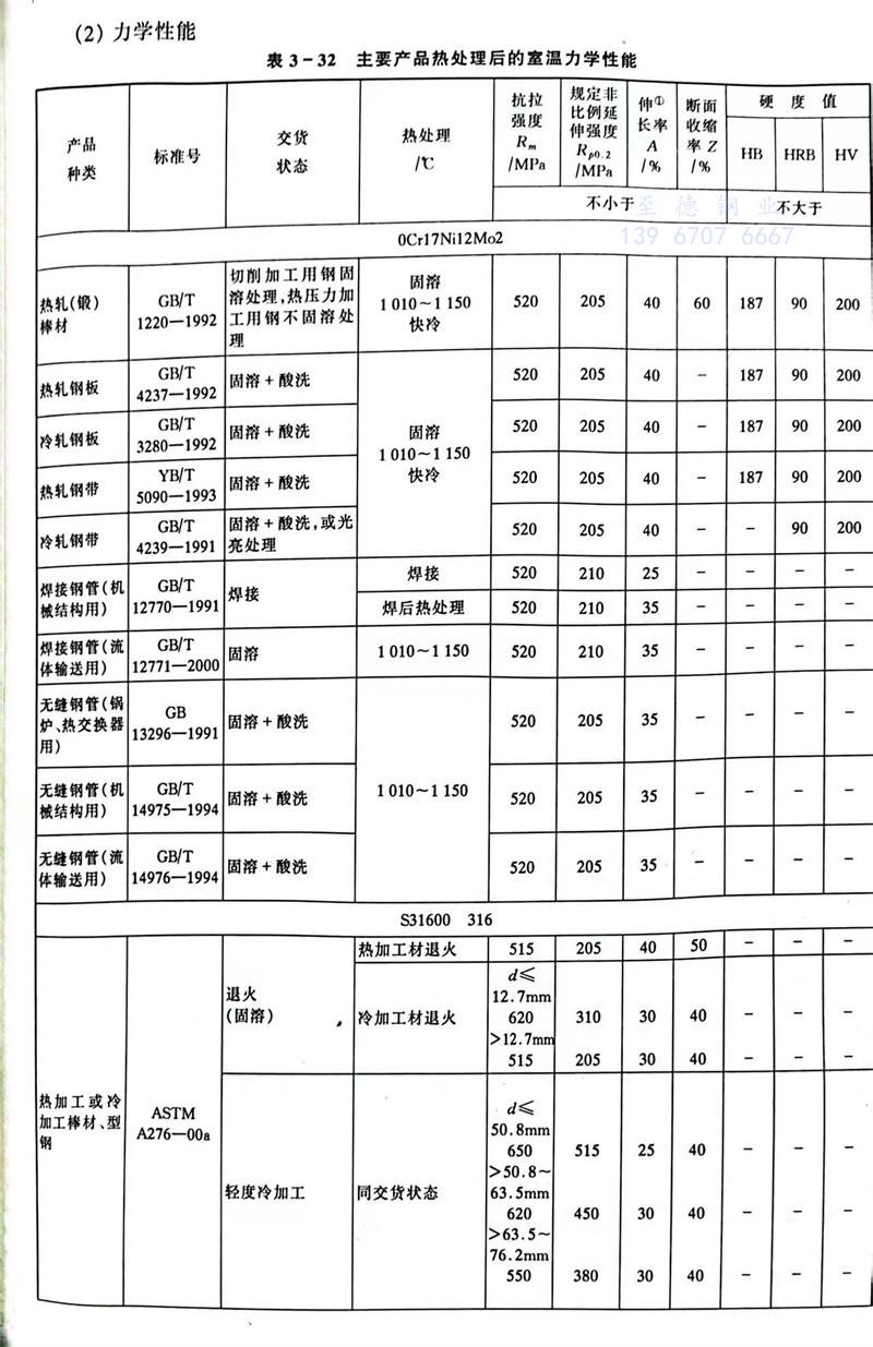 S31608 0Cr17Ni12Mo2 不銹鋼(gang)主要(yao)特性和用途