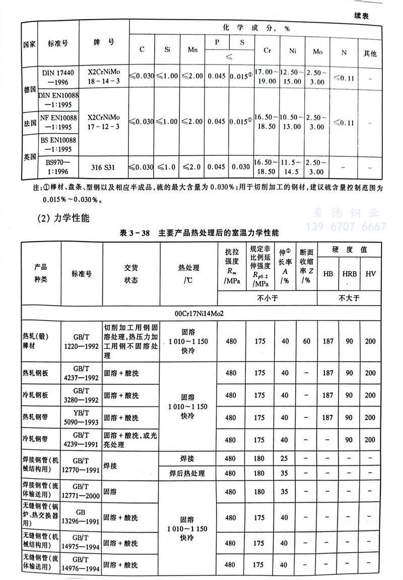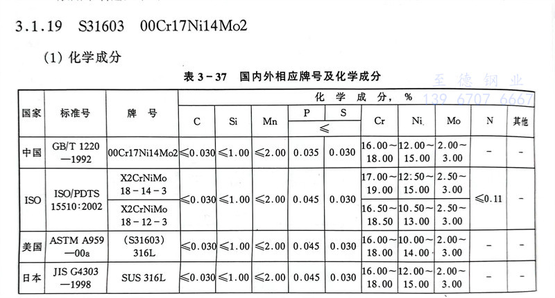 S31603 00Cr17Ni14Mo2 不銹鋼(gang)主要(yao)特(te)性和用途(tu)