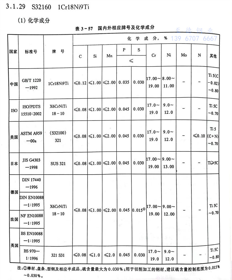 S32160 1Cr18Ni9Ti 不銹鋼主要(yao)特性和用(yong)途