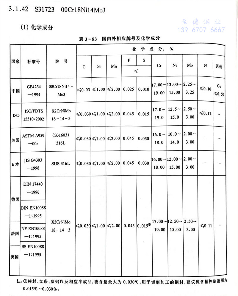S31723 00Cr18Ni14Mo3 不銹鋼(gang)主要特(te)性和(he)用途(tu)