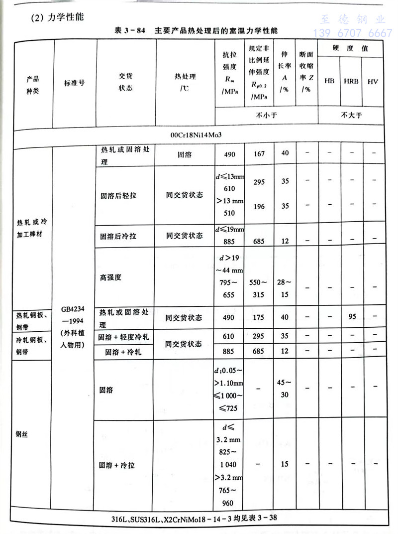 此鋼的特(te)性(xing)與(yu)00Cr19Ni13Mo和(he)00Cr18Ni13Mo3 不銹鋼相(xiang)近,可用(yong)于與(yu)這兩種鋼環(huan)境基本相(xiang)同(tong)的條件下。但此鋼常作為(wei)外科植入(ru)材料使用(yong)。