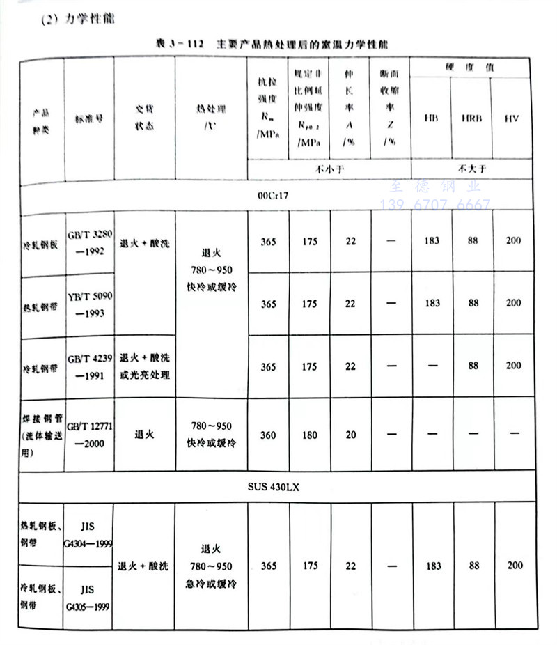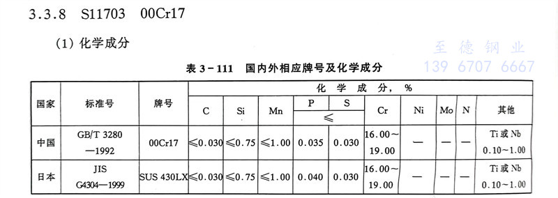 S11703 00Cr17 不銹鋼主(zhu)要特性和(he)用途