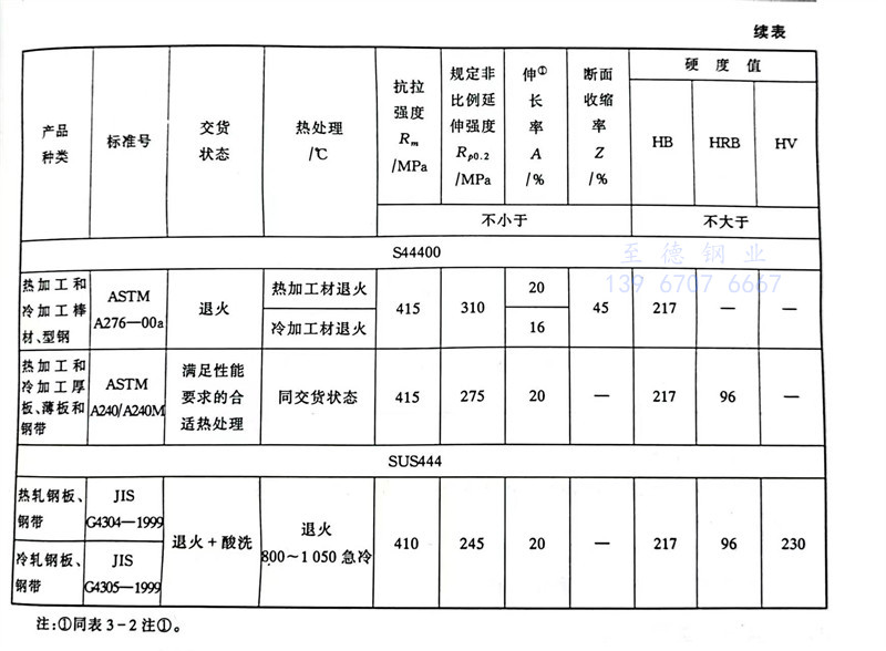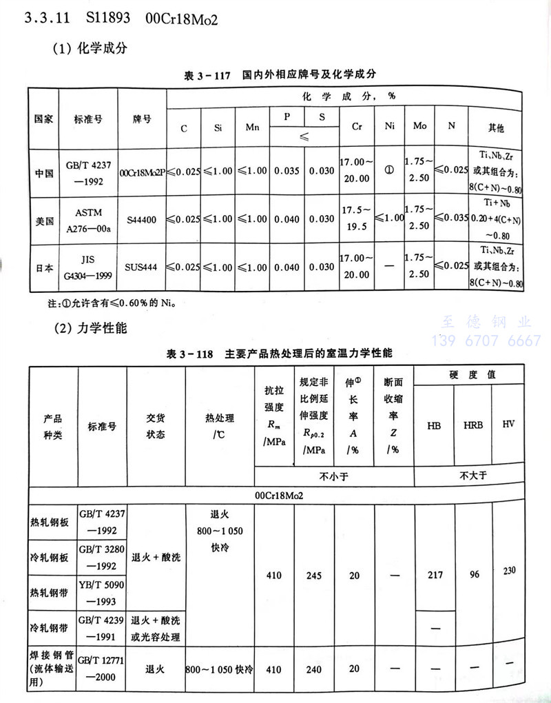 S11893 00Cr18Mo2 不銹(xiu)鋼主要特性和(he)用途