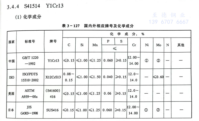 S41514 Y1Cr13 不(bu)銹鋼(gang)主(zhu)要特性和用途