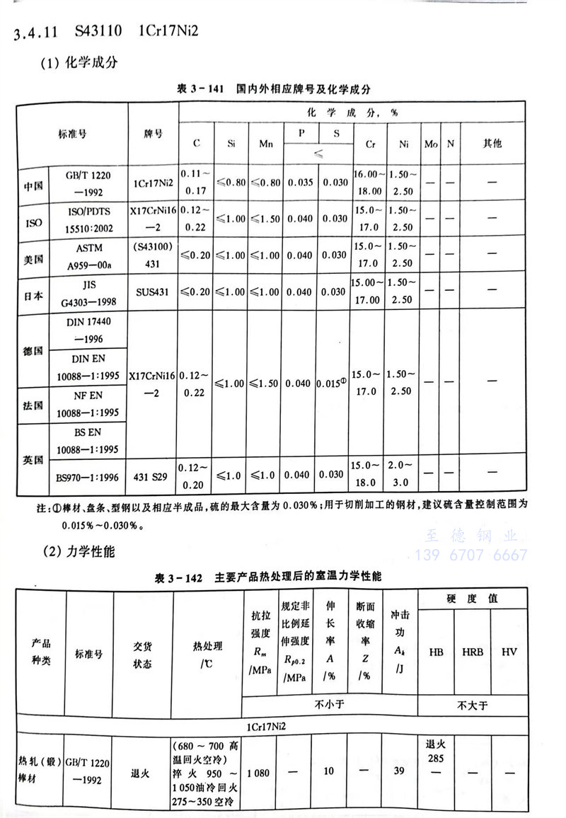 S43110 1Cr17Ni2 不銹鋼主要特(te)性和用途(tu)