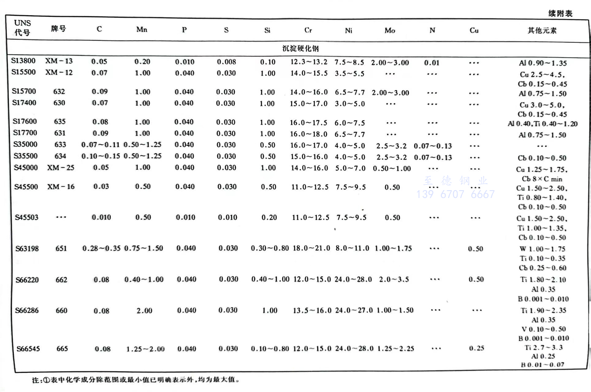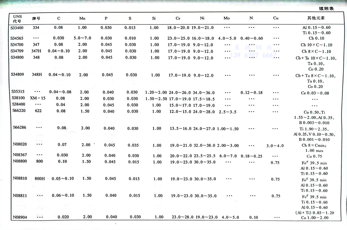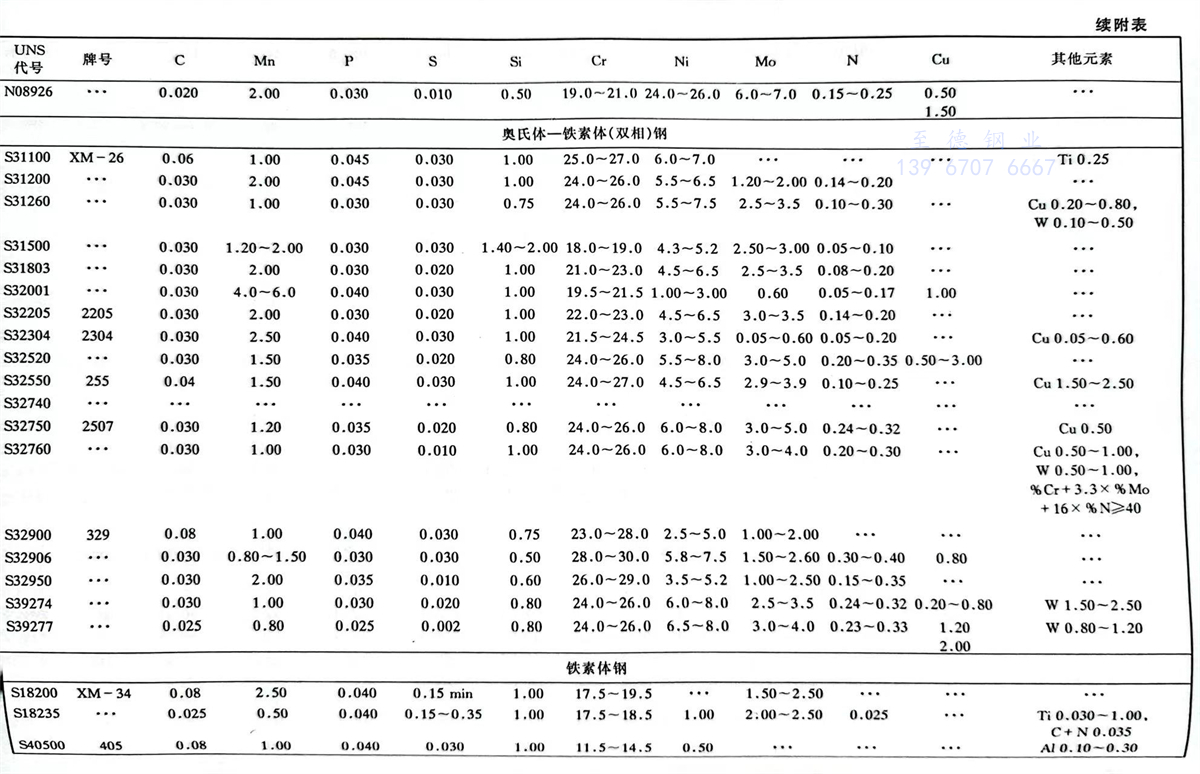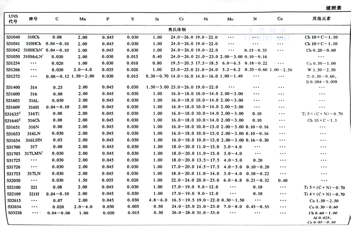 美(mei)國材料(liao)與試驗(yan)協會(ASTM)不銹(xiu)鋼標準牌號(hao)及(ji)化學成分(%)