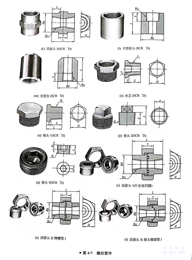 ②. 螺紋(wen)(wen)(wen)(wen)連(lian)接(jie)也多用于DNDN≤40n40mm的(de)(de)管(guan)子(zi)及其元件之(zhi)(zhi)(zhi)間(jian)的(de)(de)連(lian)接(jie)。常用于不宜焊接(jie)或需要可拆卸的(de)(de)場合。螺紋(wen)(wen)(wen)(wen)連(lian)接(jie)件有陽(yang)螺紋(wen)(wen)(wen)(wen)(Male Screw)和陰螺紋(wen)(wen)(wen)(wen)(Female Screw)之(zhi)(zhi)(zhi)分。常用的(de)(de)管(guan)件中,螺紋(wen)(wen)(wen)(wen)短(duan)節為(wei)陽(yang)螺紋(wen)(wen)(wen)(wen),而彎頭、三(san)通、管(guan)帽、活接(jie)頭等(deng)多為(wei)陰螺紋(wen)(wen)(wen)(wen),使用時應注意它們之(zhi)(zhi)(zhi)間(jian)的(de)(de)搭(da)配和組合。