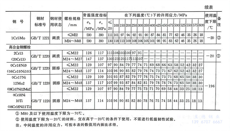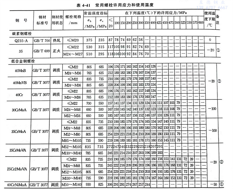 常用(yong)螺栓許用(yong)應力和使用(yong)溫度見表4-41。