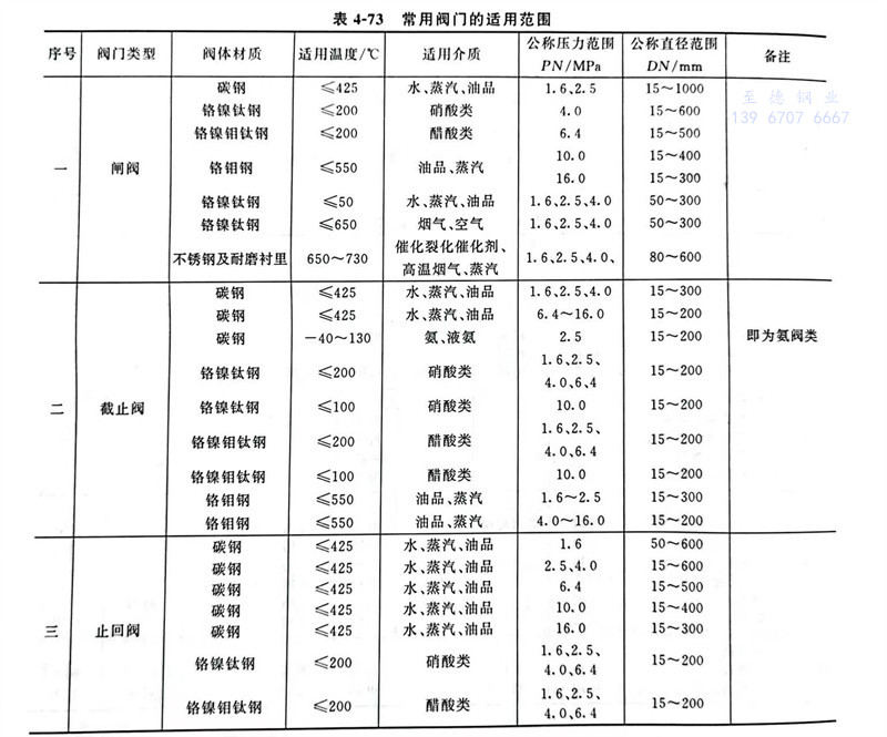 常用閥門適用范圍介紹