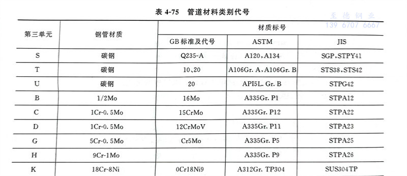 表4-75 管(guan)道材料類(lei)別代號(hao)