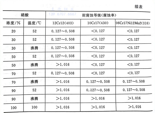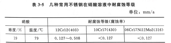 表3-5 幾種常用(yong)不銹(xiu)鋼在硝酸溶(rong)液中耐腐蝕等(deng)級