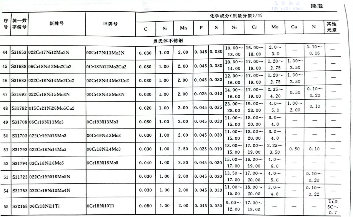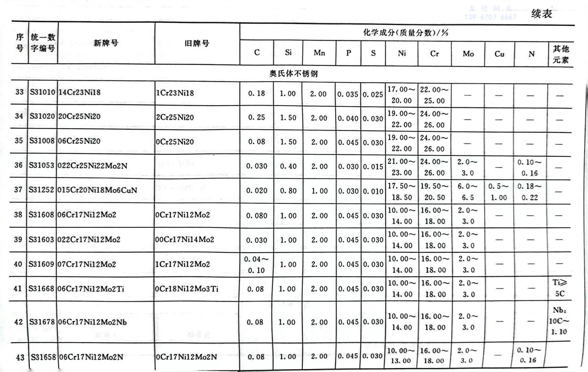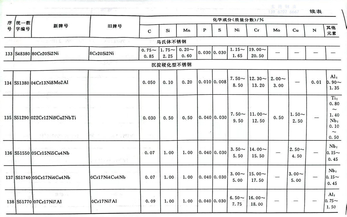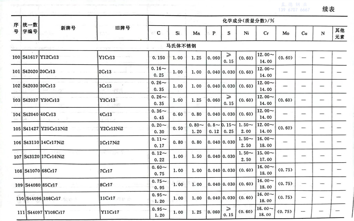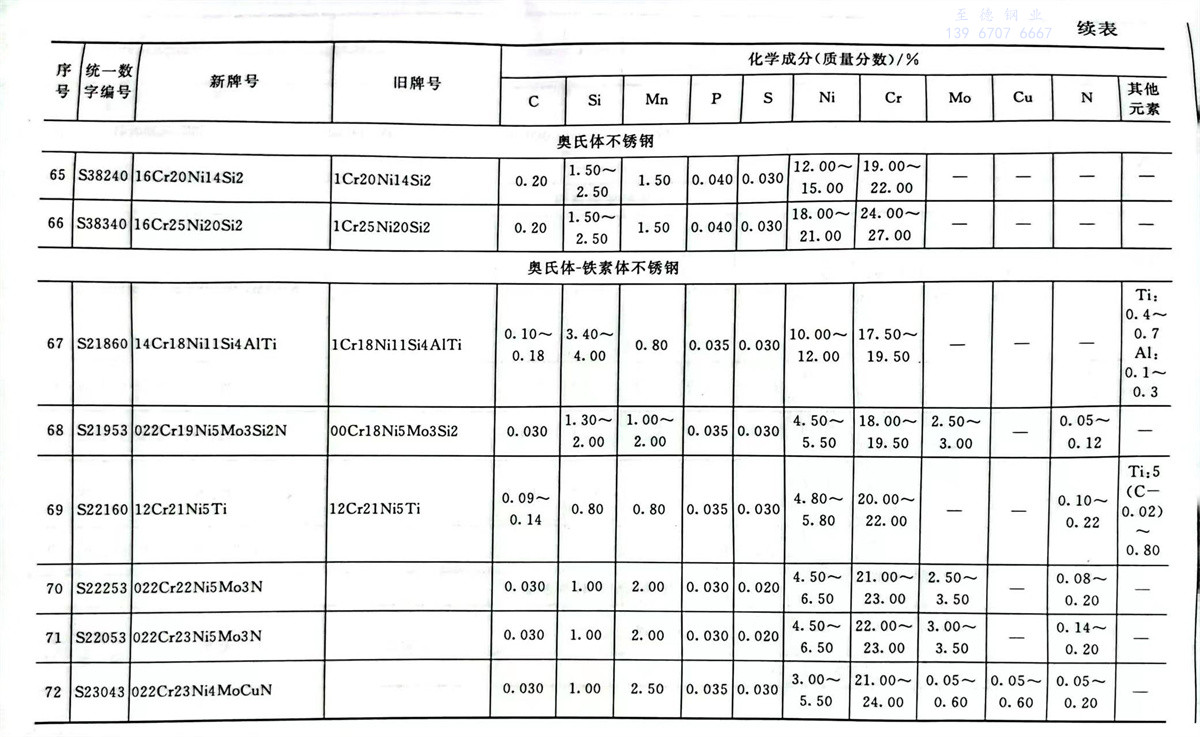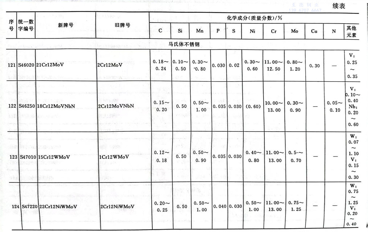 不銹鋼和耐熱鋼牌號及其化學成分表