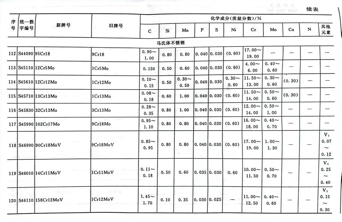 不銹鋼(gang)和(he)耐(nai)熱鋼(gang)牌號及其化學成分表