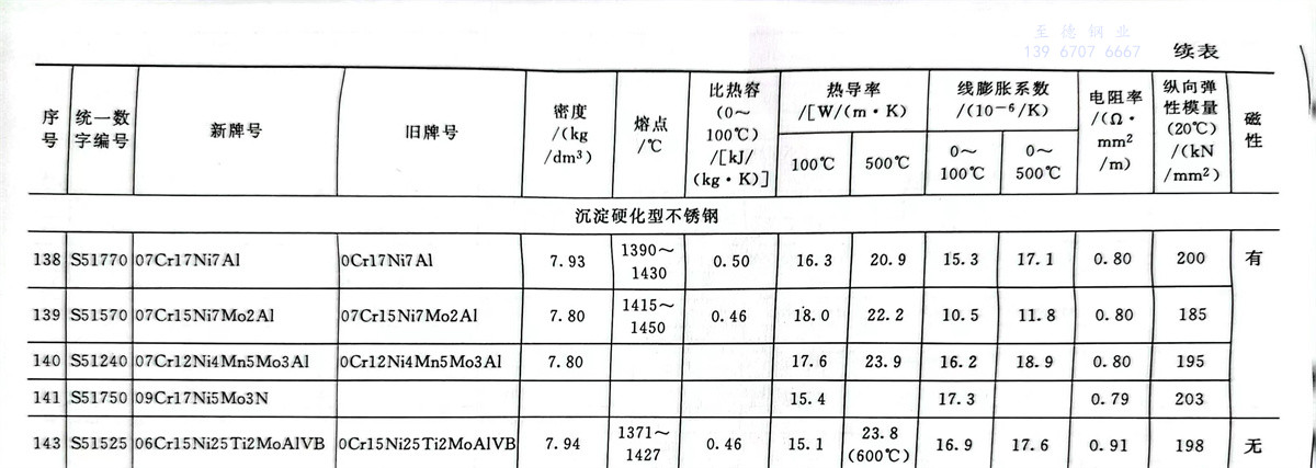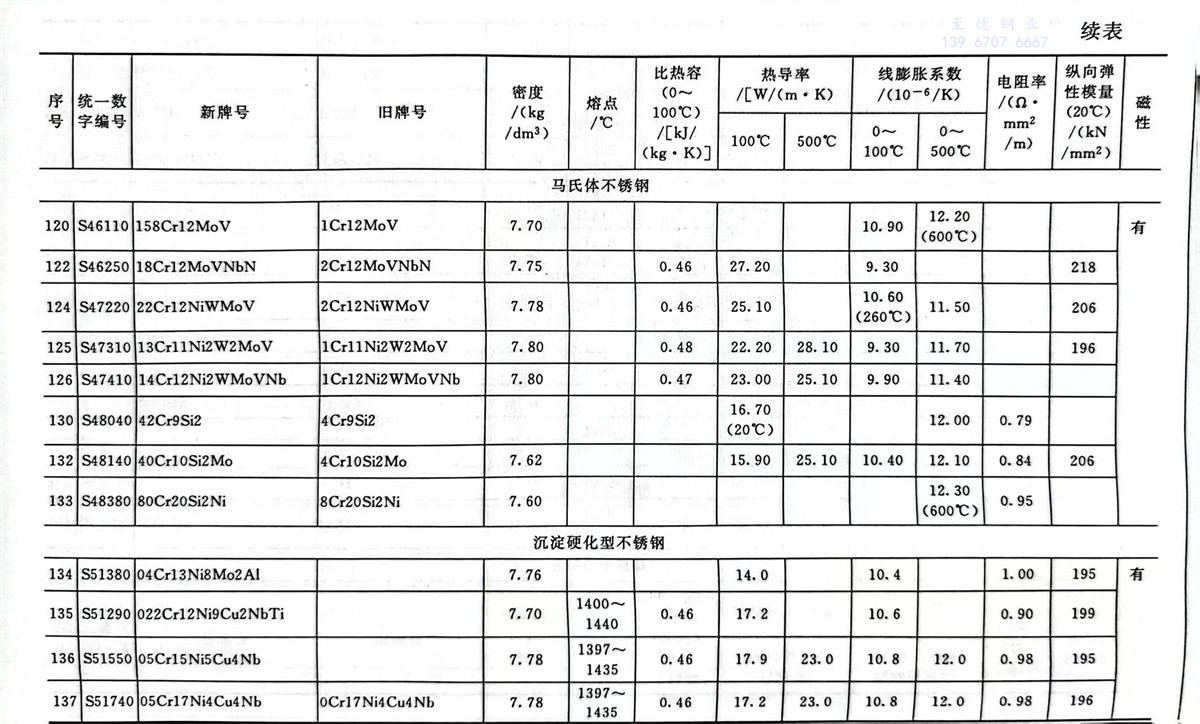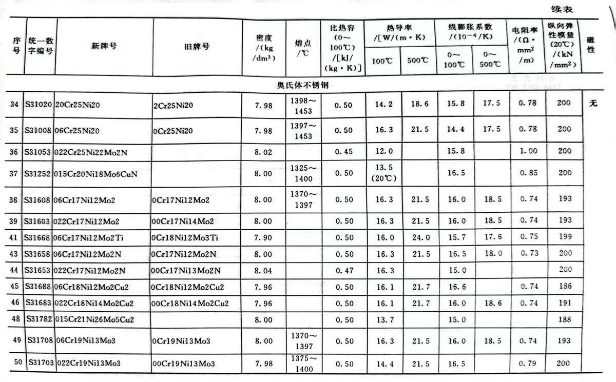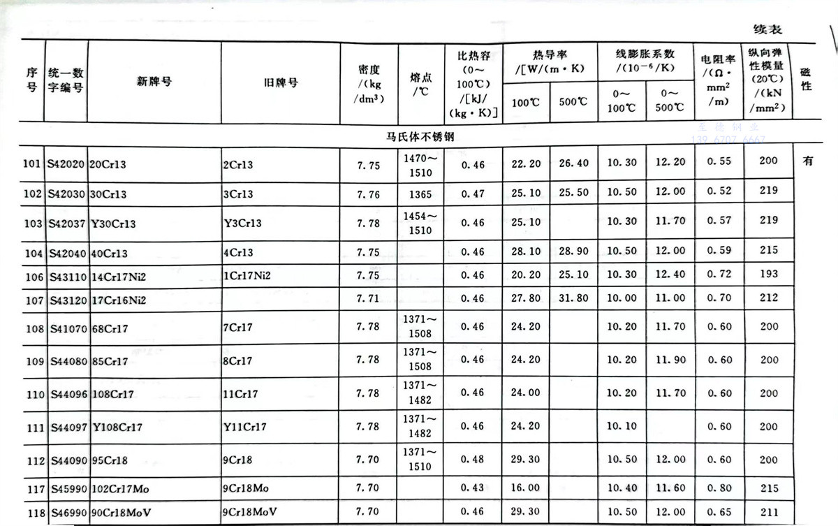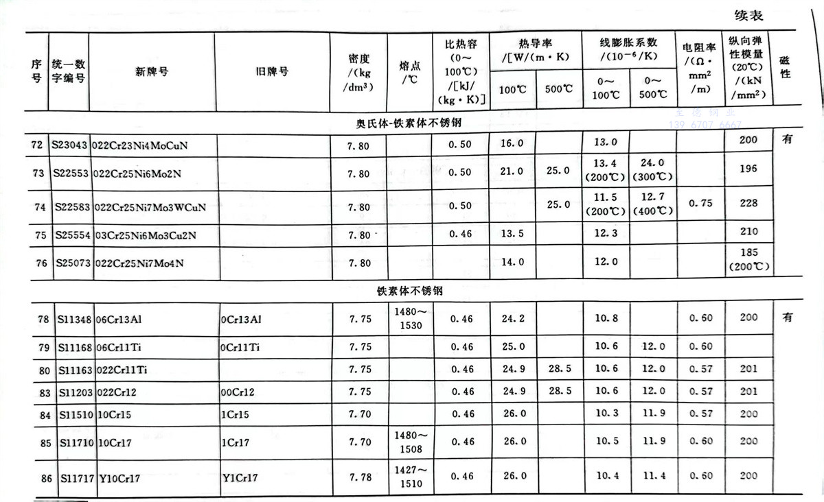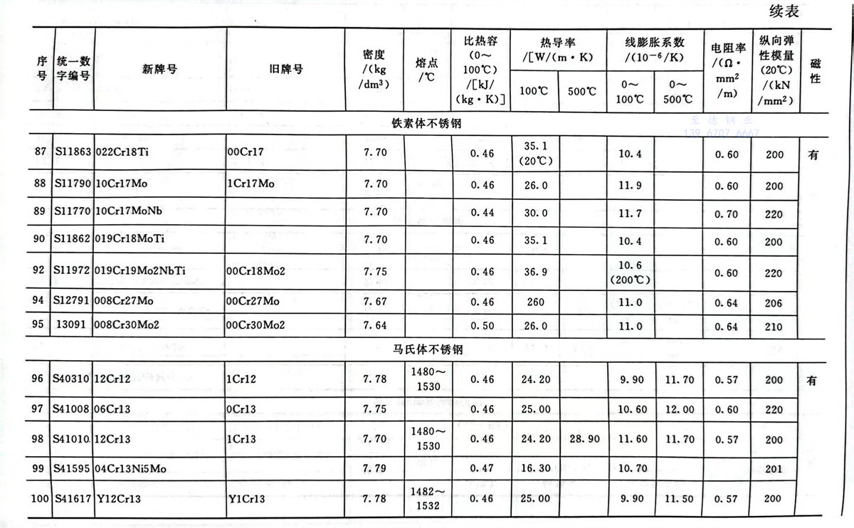 不銹鋼和(he)耐熱鋼牌號的物理性能參數表