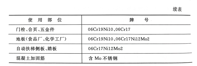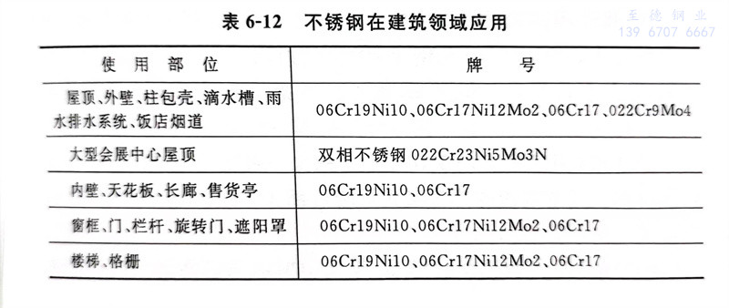 不(bu)銹鋼在建(jian)筑領域(yu)應(ying)用,列于表(biao)6-12。