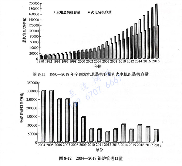 1990-2018年(nian)全國發電總裝機(ji)容量和(he)火電機(ji)組裝機(ji)容量如圖(tu)(tu)8-11所示。2004-2018年(nian)鍋爐管進出口量如圖(tu)(tu)8-12和(he)圖(tu)(tu)8-13所示。