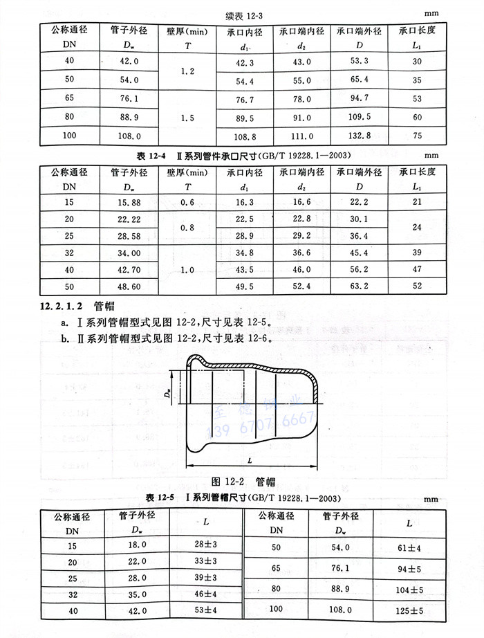 a.Ⅰ系列管件(jian)承口型式見(jian)圖(tu)12-1,尺寸見(jian)表12-3。