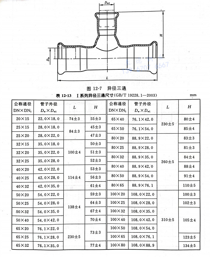 a.Ⅰ系列異徑三通型式見圖12-7,尺(chi)寸(cun)見表12-13。