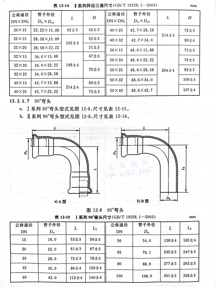 a.Ⅰ系列90°彎頭型式見圖12-8,尺寸見表12-15。
