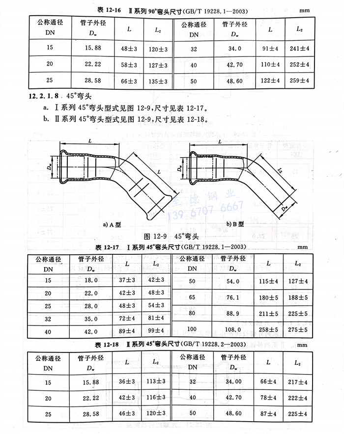 b. Ⅱ系(xi)列45°彎頭型式(shi)見圖12-9,尺(chi)寸見表12-18。
