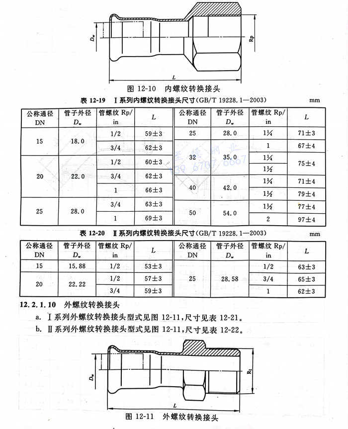 a.Ⅰ系列內螺(luo)紋(wen)轉換接(jie)頭型式見圖12-10,尺寸見表12-19。
