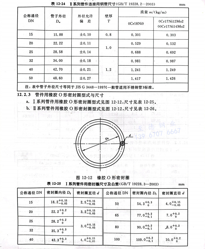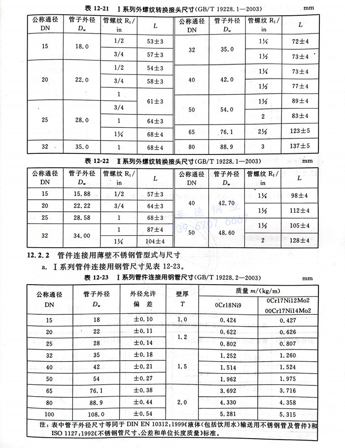 a.Ⅰ系列管件連接用薄壁(bi)不銹(xiu)鋼管尺寸見表12-23。