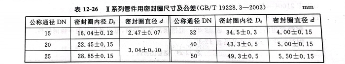 b. Ⅱ系列管件用(yong)橡膠O形密封(feng)圈(quan)公差見(jian)表12-26。