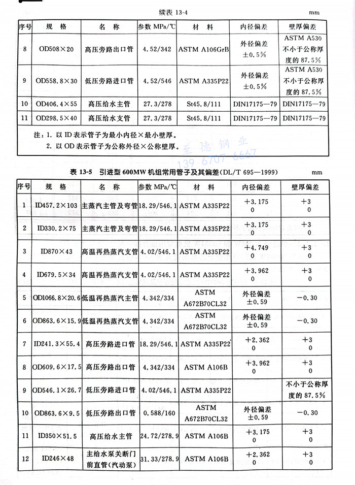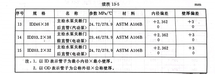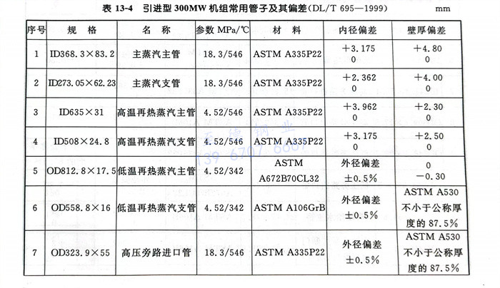 引進型300MW機(ji)組(zu)(zu)常(chang)用管子(zi)(zi)及(ji)其偏差見(jian)表(biao)13-4,引進型600MW 機(ji)組(zu)(zu)常(chang)用管子(zi)(zi)及(ji)其偏差見(jian)表(biao)13-5。
