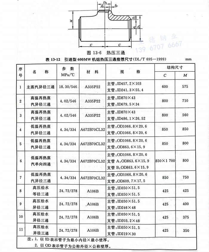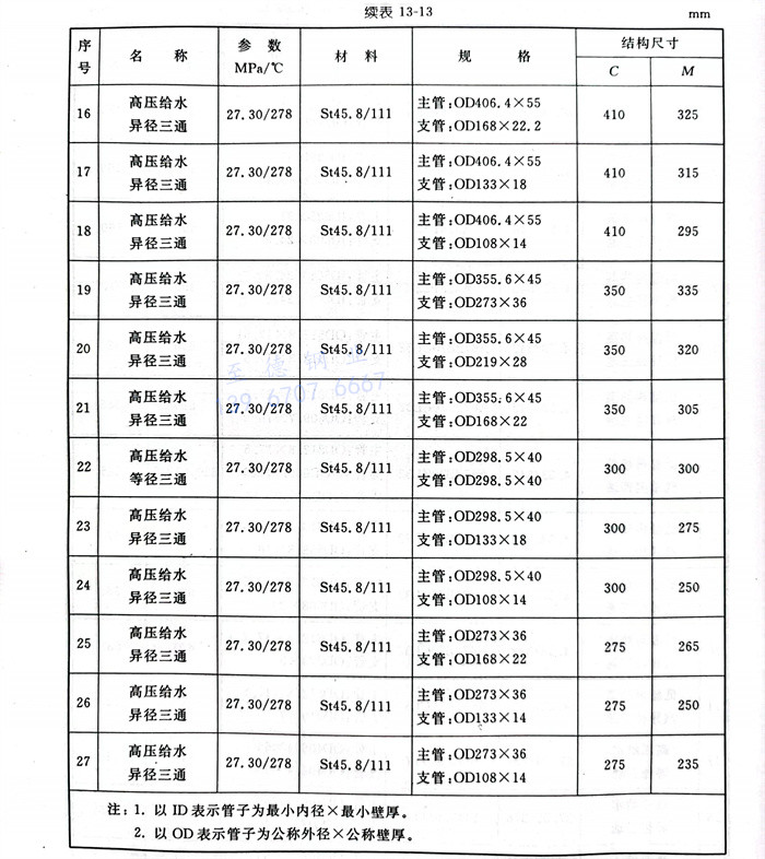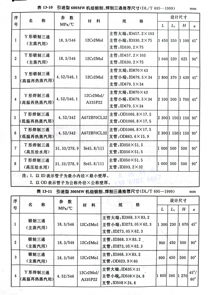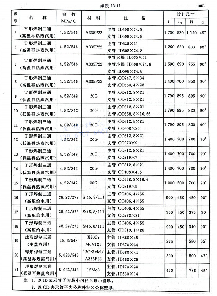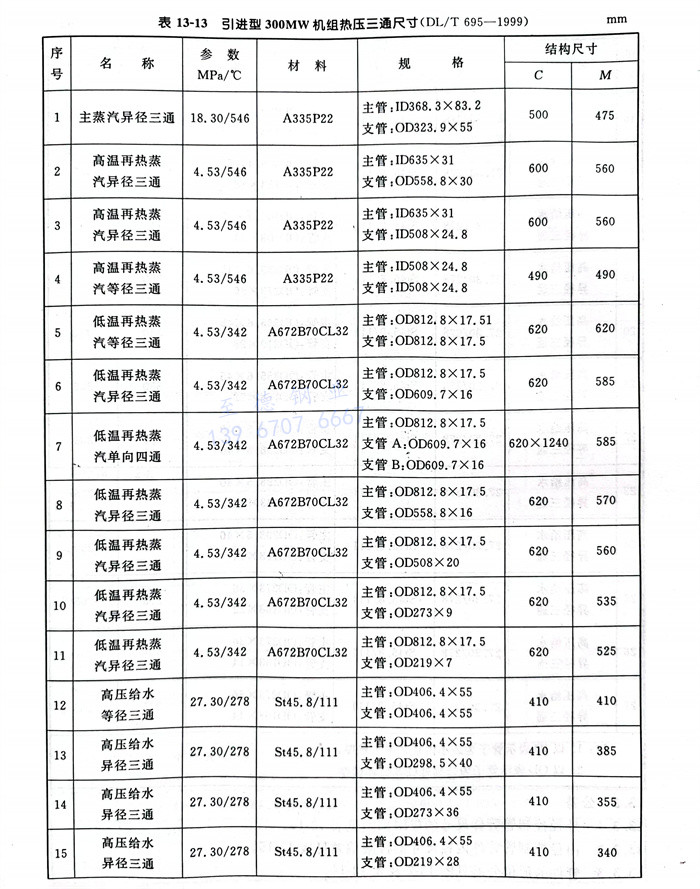 引進型600MW 機組及300MW 機組用管件包括火電廠鍛制、焊制三通及熱壓三通兩種尺寸。