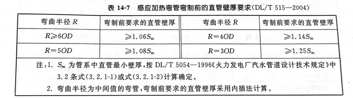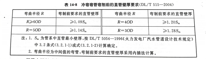 d. 用作不銹鋼彎管的直管,其最小壁厚的選擇見表14-7及表14-8。彎制時應將直管較厚的一側置于彎管的受拉側。