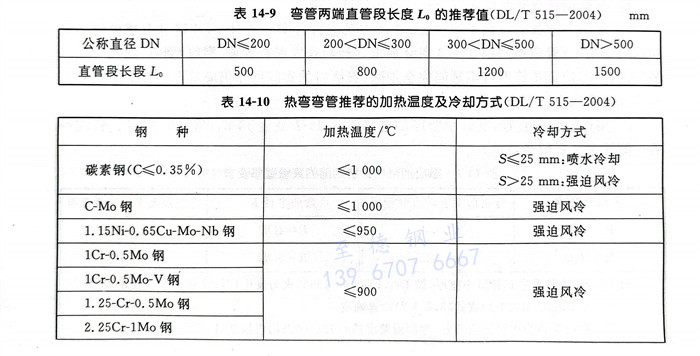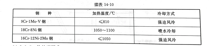 d.熱(re)彎(wan)彎(wan)管推薦的加熱(re)溫度及冷卻(que)方式(shi)見表14-10。