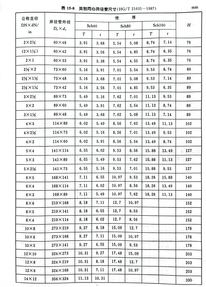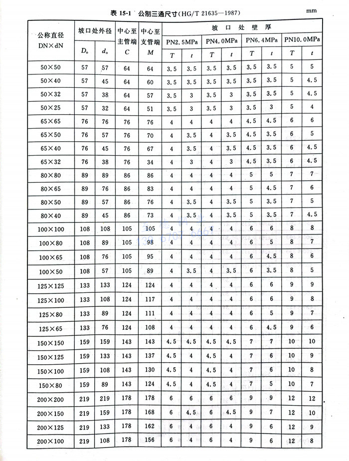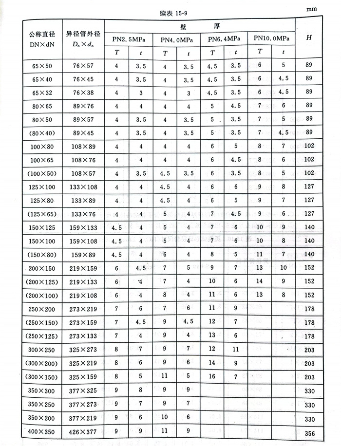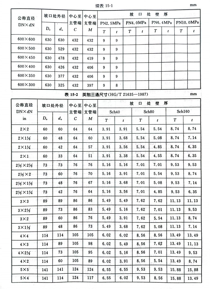 同心異徑管型式見(jian)圖15-4,公制(zhi)三(san)通尺(chi)寸見(jian)表15-7;英制(zhi)三(san)通尺(chi)寸見(jian)表15-8。