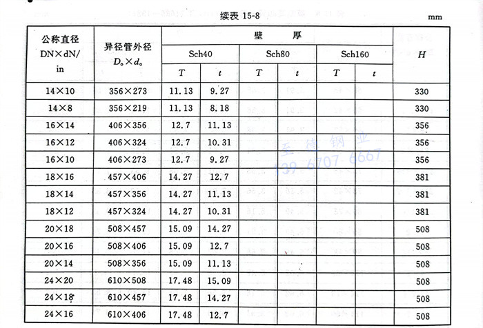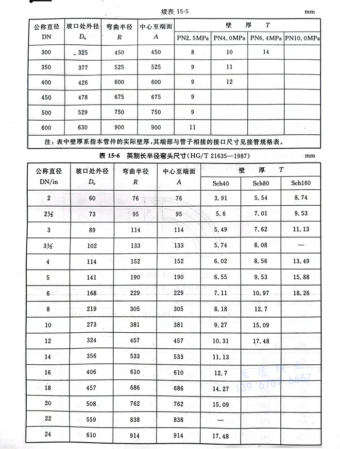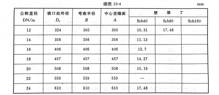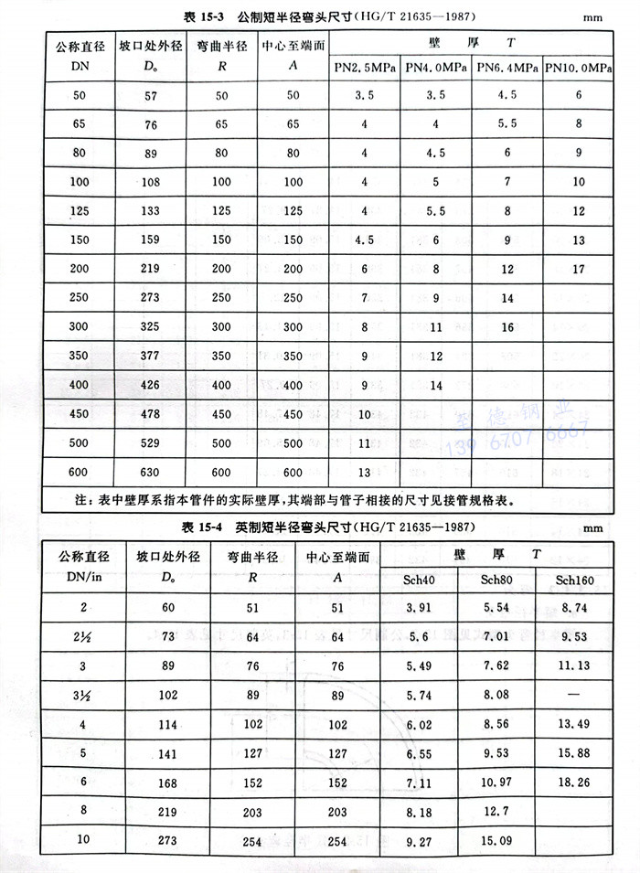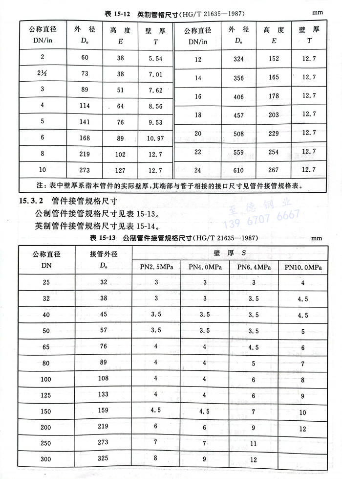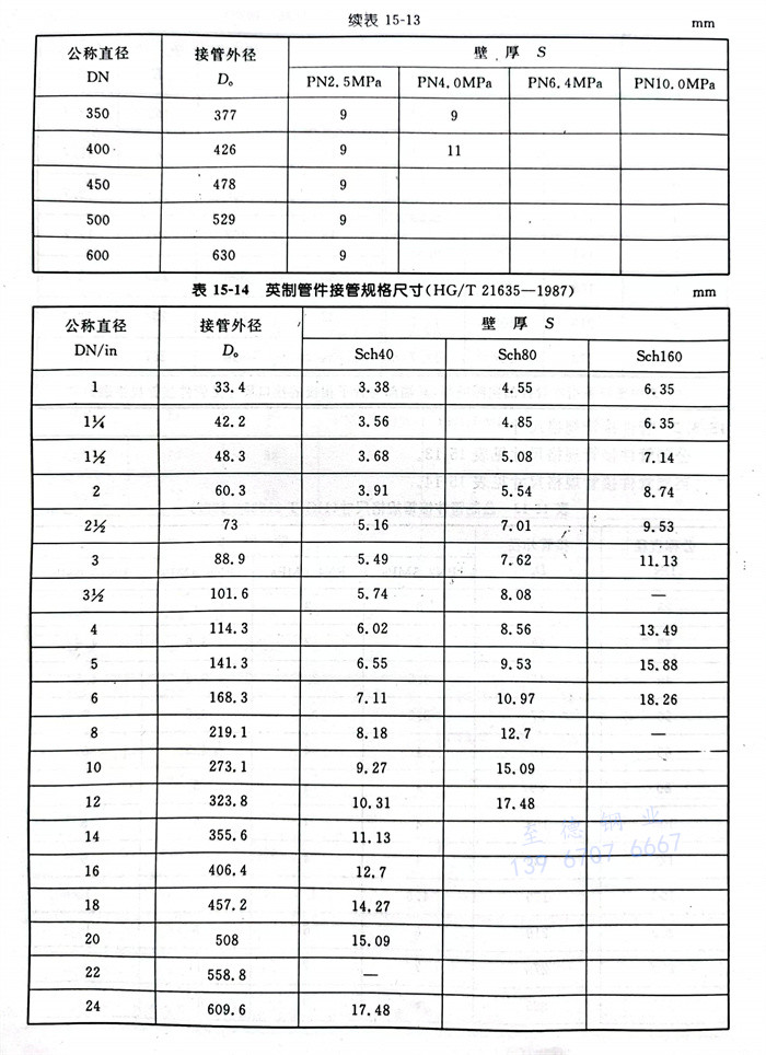 英制管件接管規格尺寸(cun)見(jian)表 15-14