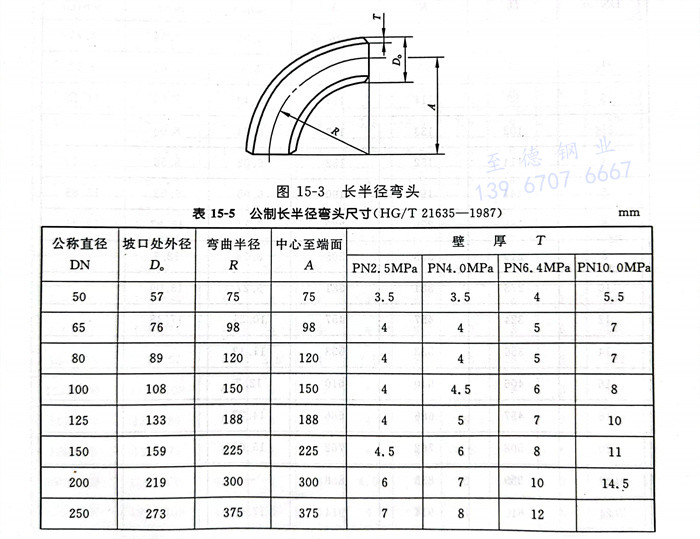長半徑彎頭型式見(jian)圖15-3,公制三(san)通(tong)(tong)尺寸(cun)(cun)見(jian)表15-5;英制三(san)通(tong)(tong)尺寸(cun)(cun)見(jian)表15-6。