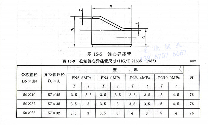 偏心異徑(jing)管(guan)型(xing)式見(jian)(jian)圖15-5,公制三通尺寸見(jian)(jian)表(biao)15-9;英制三通尺寸見(jian)(jian)表(biao)15-10。