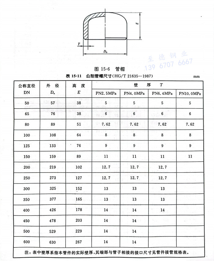 管(guan)帽型式見圖15-6,公(gong)制三(san)通(tong)尺(chi)寸(cun)見表(biao)15-11;英制三(san)通(tong)尺(chi)寸(cun)見表(biao)15-12。