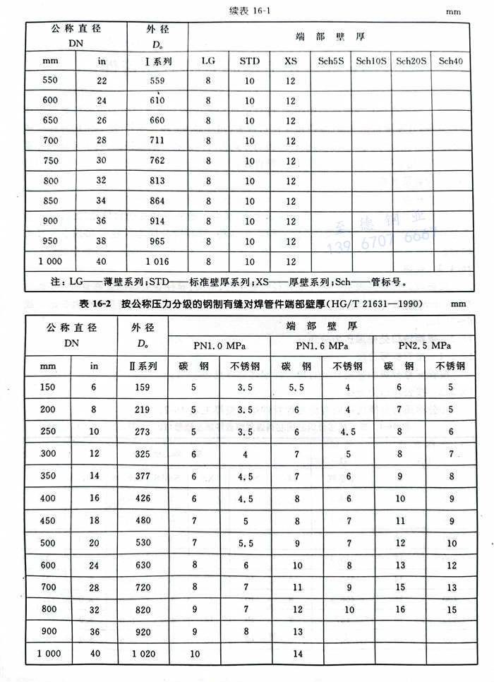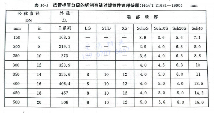 按管(guan)標號分級的(de)鋼制有縫對焊管(guan)件端部壁厚見表(biao)16-1。